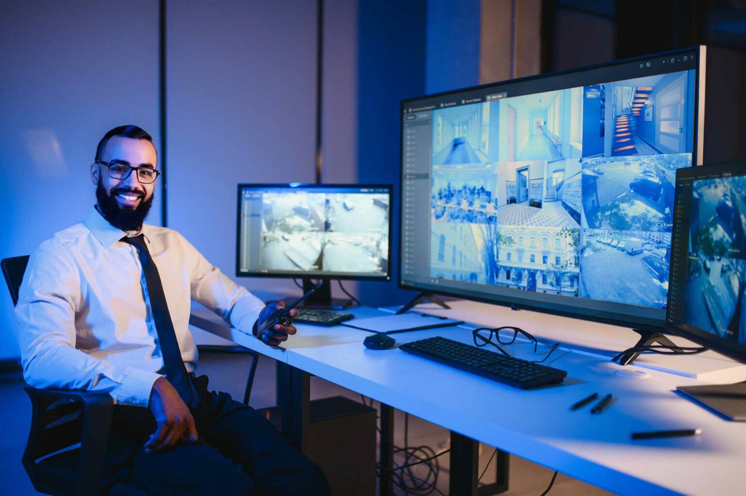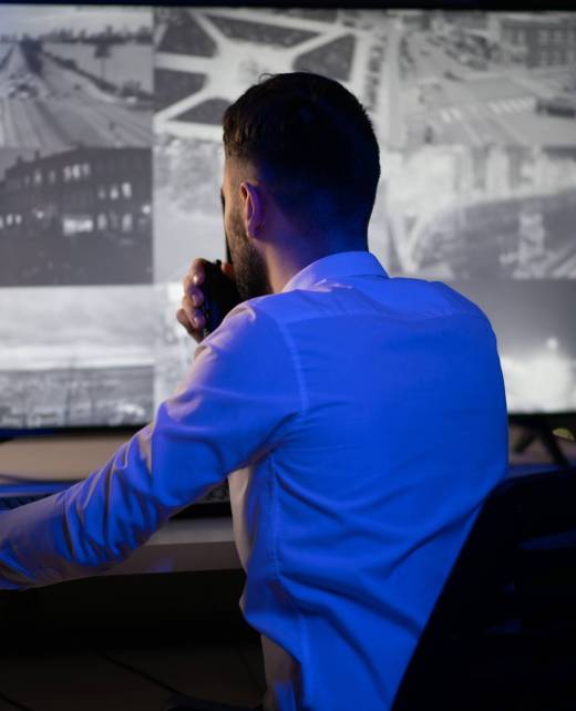 Opérateur de sécurité surveillant les caméras